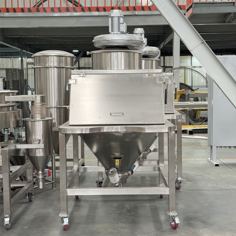 এর কার্যকারিতার মূল নীতি হল নেতিবাচক চাপ অপসারণ এবং শারীরিক বিচ্ছিন্নতার সমন্বয়: উপকরণগুলি ফিডিং স্টেশনে প্রবেশ করার পরে, বিল্ট-ইন ফ্যান চালু হয়, যা ফিডিং হপারে একটি স্থিতিশীল নেতিবাচক চাপ তৈরি করে, যা নির্দেশিত বায়ুপ্রবাহের সাথে উড়ন্ত ধুলোকে দমন করে এবং এটিকে সমন্বিত পরিস্রাবণ সিস্টেমে টেনে নেয়, এইভাবে বাতাস থেকে ধুলোর বিভাজন ঘটায়। এই সরঞ্জাম কর্মশালার পরিবেশকে উল্লেখযোগ্যভাবে উন্নত করতে পারে, উপাদানের ক্ষতি কমাতে পারে এবং কর্মীদের স্বাস্থ্য নিশ্চিত করতে পারে। এটি খাদ্য ও রাসায়নিকের মতো শিল্পগুলিতে ব্যাপকভাবে ব্যবহৃত হয় যেখানে পরিচ্ছন্নতার কঠোর প্রয়োজনীয়তা রয়েছে।